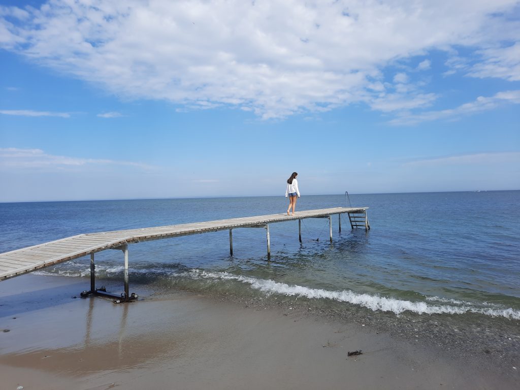 Die Freude am Strand wurde allerdings getrübt durch die hohe Dichte an fetten Feuerquallen, die quasi alle paar Meter in Ufernähe trieben. Auch ohne sie kostete es Überwindung, ins Wasser zu gehen: bei Temperaturen um die 20 Grad braucht man nicht wirklich eine Abkühlung. Einmal wagte ich mich dennoch ins Wasser: nach dem morgendlichen Joggen war ich gut aufgeheizt und die See glatt und klar, keine Quallen zu sehen. Da ließ ich schnell alle Hüllen fallen und kletterte an einem Badesteg die Leiter runter. Ein köstliches Gefühl – danach.