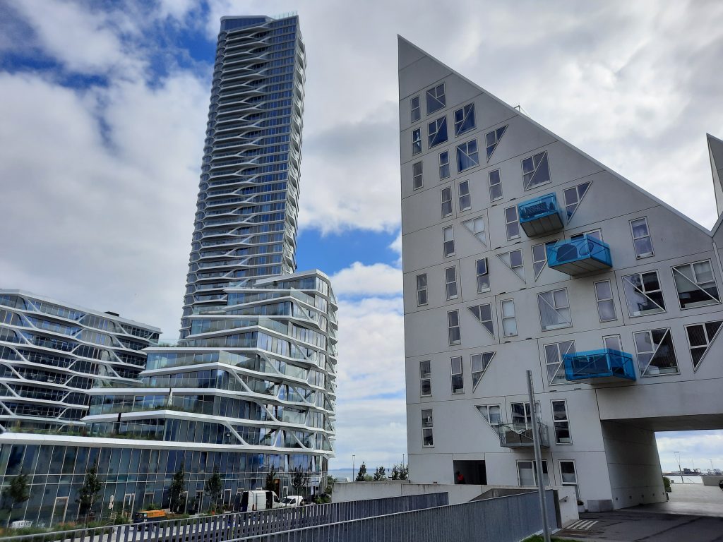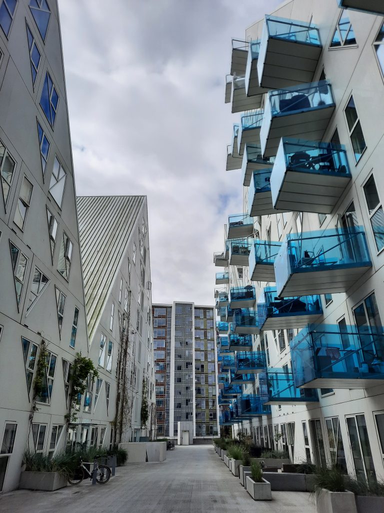 Wir parkten also zunächst im modernen Teil und bewunderten neue dänische Architektur. Ich mag das maritime Ambiente dort, viele Wohnungen haben sogar direkten Zugang zum Wasser und vor den kleinen Anlegestegen liegen Kajaks und man könnte problemlos jeden Tag schwimmen gehen. Vorausgesetzt man ist abgehärtet und lässt sich von den Quallen nicht abschrecken.