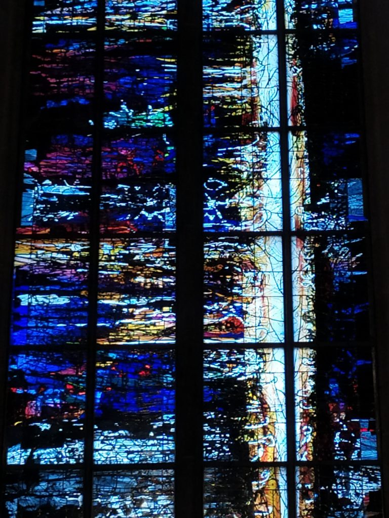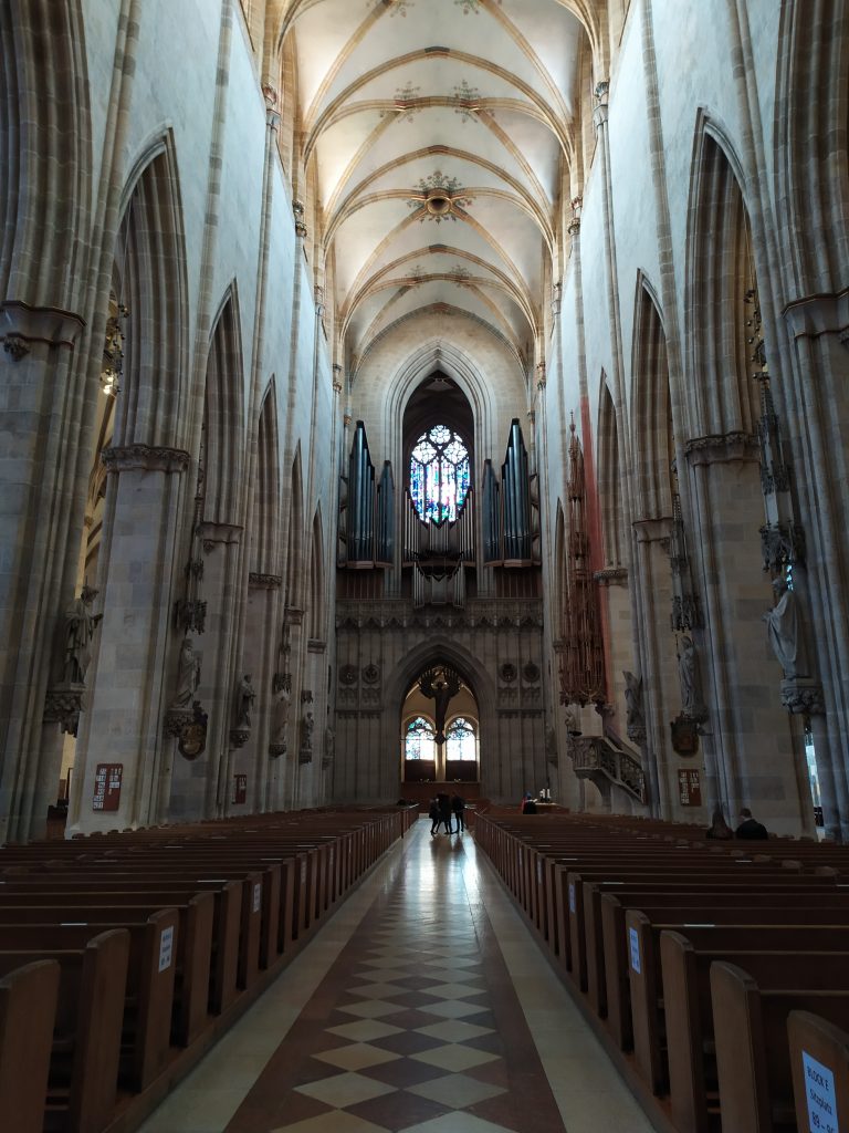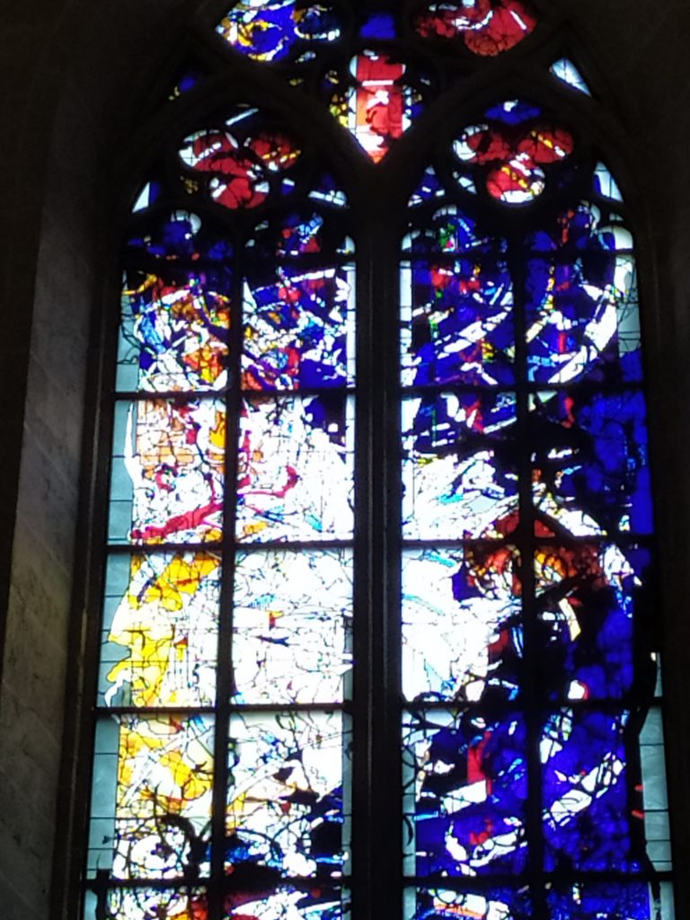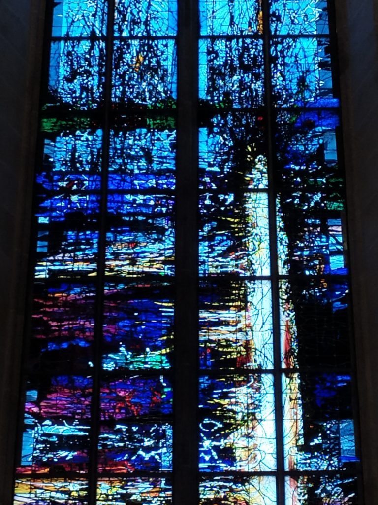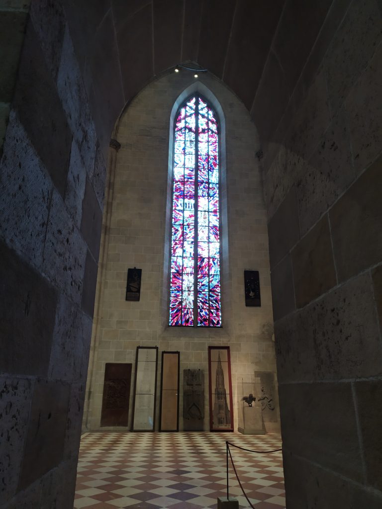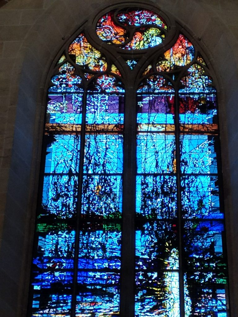Meine Freundin und ich waren mit null Erwartungen angereist, es ging in erster Linie um ein Wiedersehen auf halber Strecke an einem neuen Ort. Ulm hat uns beide überrascht. Ein wirklich nettes, gar nicht mal so kleines Städtchen mit hübschen Häuschen, dem großen Fluss vor der Haustür und dem riesigen Dom. Tatsächlich war dieser mit den großartigen, von Kuzio gestalteten Mosaikfenstern eines meiner Highlights. Auch zu erwähnen ist die detailreiche Chor-Bestuhlung mit holzgeschnitzten Gestalten an jedem Stuhl.
