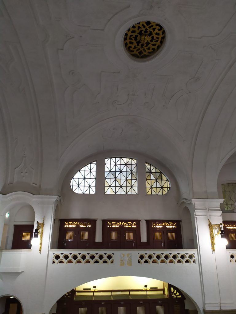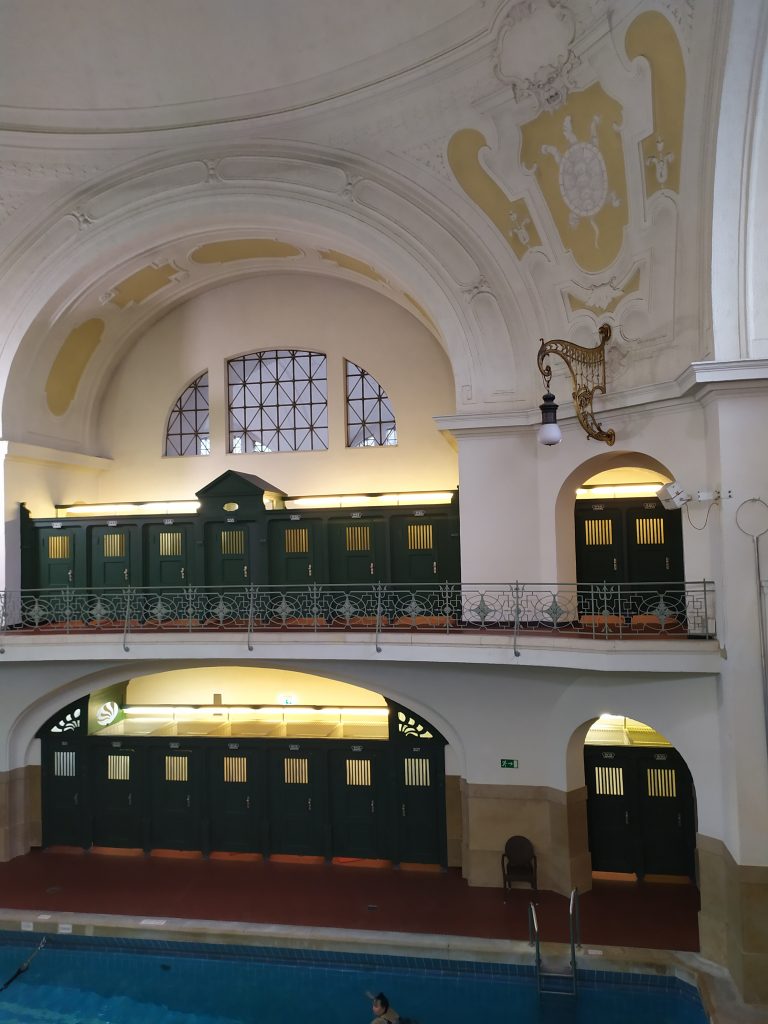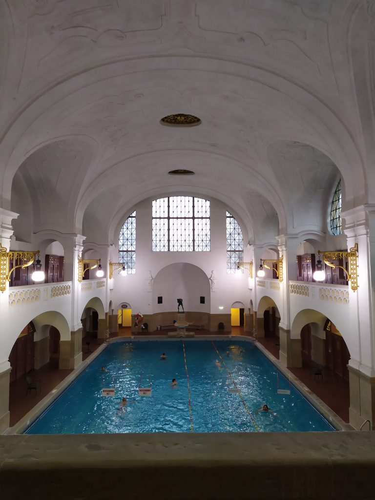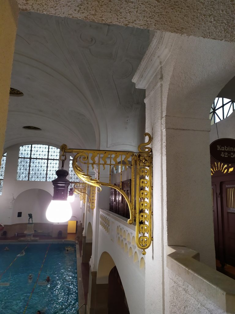 Wahrhaft ein Tempel, nur fürs Bahnenschwimmen nicht geeignet. Immerhin eine Länge von 30 m in der „großen Halle“, aber keine gute Wendemöglichkeit, an einem Ende erwartet einen entweder der Wasserspeier oder der Eingang ins Becken. Und wenn man 50 m gewöhnt ist, sind 30 m einfach kurz und man kommt sich vor wie ein kranker Fisch, der ständig auf und ab schwimmt. Hinzu kommt, dass viele dort einfach nur plantschen und im Weg sind. Trotzdem werde ich der Perle künftig wieder öfter huldigen, ist ja auch praktisch, ein Bad in Reichweite zu haben und noch dazu so eines …
